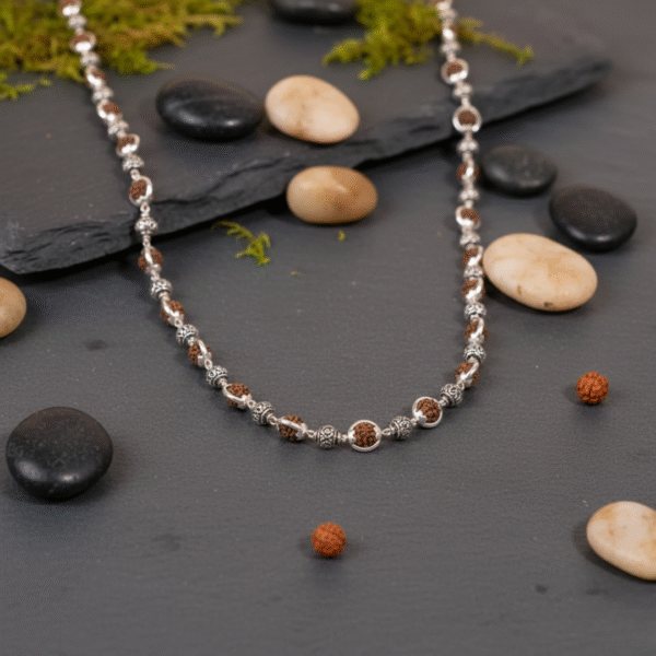 Rudraksha Capping Silver Mala (Om Beads) | Energy • Protection • Spiritual Strength
