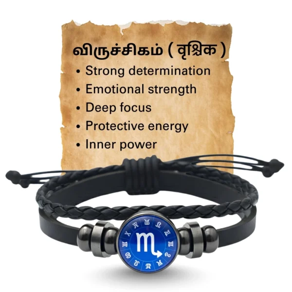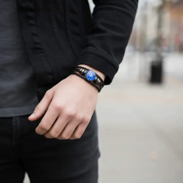 Capricorn Zodiac Leather Bracelet with Silver Crest & Success Aura