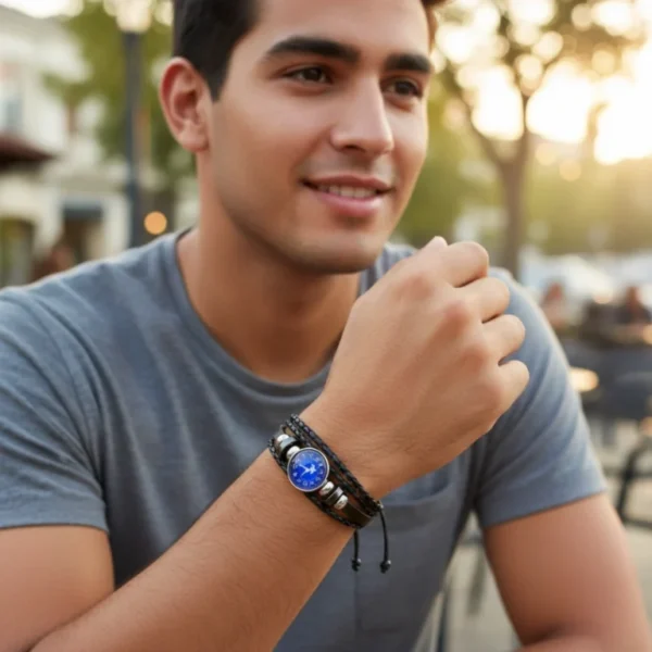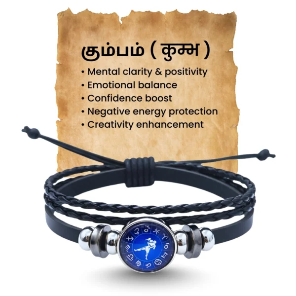 Aquarius Leather Bracelet with Silver-Tone Charm & Premium Spiritual Finish